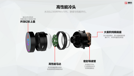 骇浪CPU水冷散热器精益求精,采取优质工艺技术,力求打造高性能水冷产品。在水冷头方面,采用纯铜底座,能更大程度地接触CPU,提升传导热量,还有高性能马达促进水冷液高速流动,转速可达2300RPM±10%,更有车规级EPDM工业级密封水平导液管,无惧高温高压,安全传输更进一步。