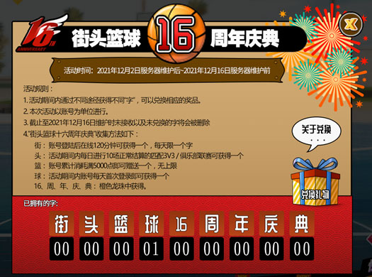 “街头篮球16周年庆典”收集方法如下: