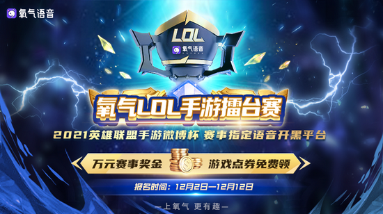 现在氧气语音《英雄联盟手游》擂台赛已经正式打响,赶紧下载APP报名参与赛事,万元赛事奖金和海量游戏点券福利正等着你。