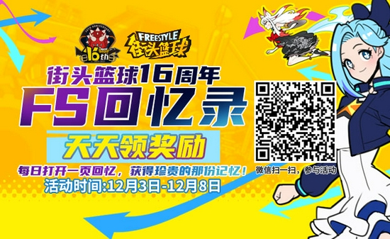 《街头篮球》FS十六周年庆版本正式上线啦!今年的主题是“不同的时代,同一份回忆”是不是瞬间回忆涌上心头了呢?让我们看看周年庆有哪些福利吧~