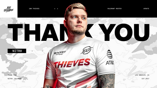 就在刚刚不久,100 Thieves正式在推特宣布了旗下Valorant选手nitr0离队的消息。
