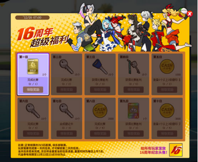 本次周年庆活动福利满满,“16周年集字赢豪礼”,“16周年超级福利”,“FS礼物箱”以及“黄金球派对”等福利送不停。而且在12月8月庆典当天,玩家登陆游戏,便可以免费领取永久+1稀有道具。