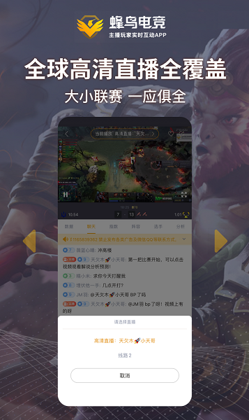 【全球高清直播全覆盖】拥有全面高清的电竞赛事直播,无论是热门的顶级联赛,还是冷门地区性野鸡赛,您都能在蜂鸟电竞收看高清电竞直播。一个APP内即可关注收看所有精彩电竞联赛!
