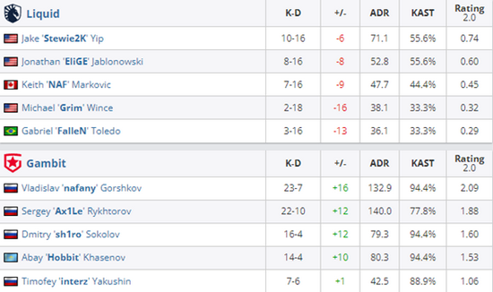 Gambit 2-1 Team Liquid(Inferno 16-14;Vertigo 13-16; Overpass 16-2)