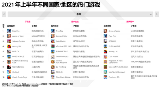 但凡事也有个例外。王者荣耀国际版(下简称AoV)出海五年,不仅没有失去自身新鲜感,甚至愈加的火爆。根据App Annie数据显示,AoV在2021年上半年成功拿下泰国下载&支出第二、月活第一,2021上半年越南月活&下载第三、支出第四的成绩。