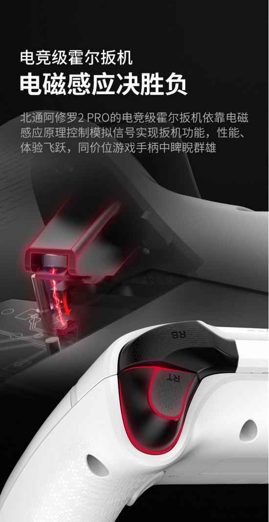 在北通阿修罗2PRO游戏手柄发售以来,其功能的全方位升级和引以为傲的霍尔扳机得到了许多粉丝的赞美和追捧:霍尔扳机使其拥有了无可比拟的顺滑、温润、舒适手感,有着超越毫米级别的超级精度还兼顾了丝滑手感;