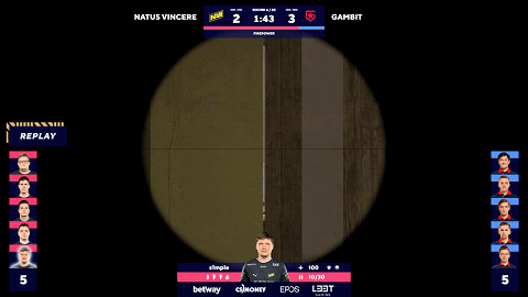 下半场攻防互换NaVi再次赢下手枪局后抓住机会将分差进一步拉大,来到长枪局后nafany打出关键四杀逆转战局,紧接着在Ax1Le赢下与Perfecto的1v1残局后Gambit正式宣告重回正轨,比分差距被缩小至两分。