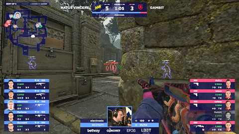 然而在进入长枪对决后比赛逐渐进入了NaVi的节奏之中,B1T与electronic被完全激活刷屏不断,逐渐打出自信的NaVi众人以更具主动性的防守策略将Gambit完全压制。然而在上半场末期Gambit调整节奏,接连的变速进攻打了NaVi一个措手不及,上半场比分定格在了9-6,NaVi暂时领先。