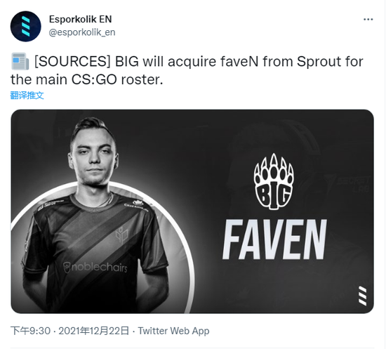 据土耳其电竞媒体 Esporkolik 透露,faveN 或将离开 Sprout ,加入BIG 。这条消息至今仍然只是传闻,目前尚无可靠凭据佐证。