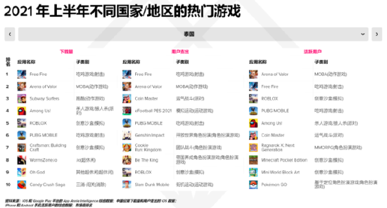 而在五年后,AoV仍旧拿下了2021上半年泰国下载&支出第二、月活第一,2021上半年越南月活&下载第三、支出第四的成绩。