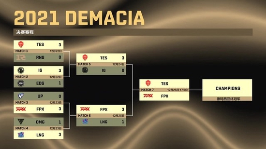 据悉,本届德玛西亚杯的八强分别是:TES、RNG、IG、EDG、UP、FPX、OMG、LNG。四强分别为:TES、IG、FPX、LNG。