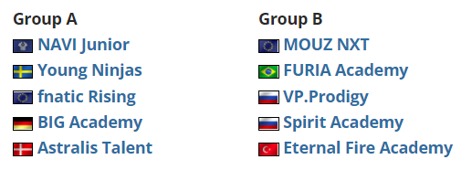 有传言称两届青训联赛冠军得主MOUZ NXT将损失一些选手去往主队,在最新的青训联赛小组赛中,他们被分到了B组。组中还有两支新加入的队伍以及之前没有进入淘汰赛阶段的VP.Prodigy和FURIA青训。A组这边的五支队伍是NaVi Junior、Young Ninjas、BIG青训、Astralis Talent以及fnatic Rising。