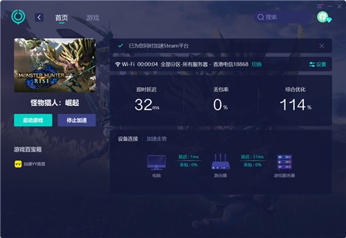 作为一款动作游戏,怪物猎人:崛起在游玩时如果出现延迟、卡顿等网络问题将非常影响游戏体验,所以建议大家使用网易UU加速器对游戏运行网络进行加速。凭借其遍布全球的加速节点和超强带宽,消除网络波动对游戏造成的影响。另外,网易UU加速器还能加速下载,帮你充分发挥带宽潜力,安装包、更新包再大也不怕。
