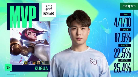 这次第17名的争夺战中,MLT的打野选手Kugua堪称最大“功臣”,在整个比赛中依托武器、卡密尔、剑姬这三名英雄拿下3场MVP,一举为队伍获得最后胜利奠定了坚实基础。