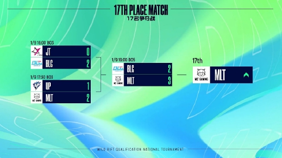 这次小组积分赛之后,第17名的争夺战也同样精彩,四个大组的第五名通过抽签选择了各自的对手,原本被看好的BLG和MLT也用2胜的战绩挺进最后对决战。