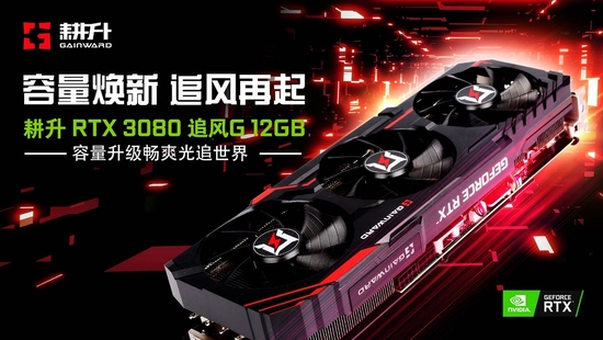 2022年1月11日22:00点,NVIDIA发布GeForce RTX 3080 12GB显卡,相比上一款RTX 3080显卡,新款拥有更多的显存,而更多的显存可以给玩家带来更极致的游戏体验,作为NVIDIA 核心AIC合作伙伴之一“耕升”,也同时发布这款全新升级的耕升 GeForce RTX 3080 追风G 12GB 显卡。耕升 GeForce RTX 3080 12GB 推出了追风系列显卡,借助高效、高性能的NVIDIA Ampere架构给玩家带来惊人的光线追踪性能,并且支持NVIDIA DLSS等技术。另外,耕升 GeForce RTX 3080 追风G 12GB显卡更大的显存除了提升游戏性能以外,在视频渲染方面也能得到提升。
