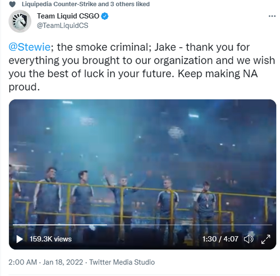 Liquid正式宣布,他们已与Stewie2K分道扬镳。在官推中,俱乐部表示: