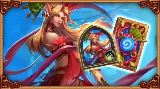 在卡背设计大赛中一举成名的玩家原创卡背“金狮闹春”正式上线!作为热爱炉石的忠实玩家,作者习洛历经数十次的优化调整,怀揣着让中国文化走向世界的棋盘,创作出这张极富美感的国风卡背,流光的金瞳,扑朔的毛发,呈现了栩栩如生的东方舞狮。
