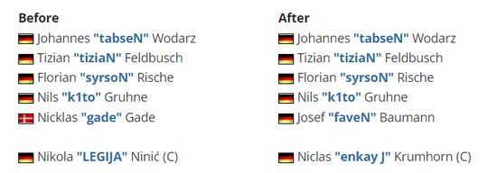 2021年,德国战车一直都致力于摆脱XANTARES离开的后遗症。在各类赛事,尤其是T1赛事中,BIG大多表现不佳。如今,他们挑选了德国最知名的新人faveN,并在Funspark ULTI终局之战打出了不错的成绩。如果faveN与syrsoN的状态能够越来越好,这支队伍必将成为比赛中的一股可怕力量。