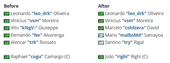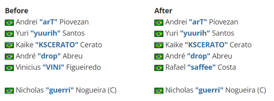 这支目前的巴西最强战队在2020年他们曾一度爬升至TOP3的位置,然而去年他们显然有些踌躇不前。明星位狙击手HEN1的离开后,他们一直在寻找正确的解法,并测试了多位青训队新人。而在新的一年,他们决定保留drop,并加引进了2021年表现出色的AWPer——saffee。让我们对他们的表现拭目以待!