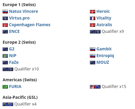Valve对确定不同赛区的传奇组分配系统进行了轻微修改。传奇组和挑战者组的分配主要取决于之前Major的成绩,而新挑战者组的名额则是永远一样:欧洲和美洲各3个,亚太地区2个。