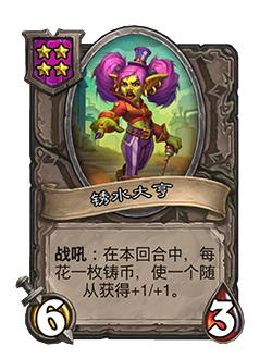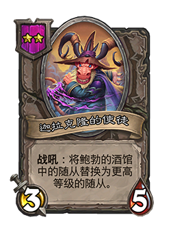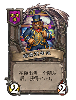 ——旧:在你使用一张随从牌后,随机在鲍勃的酒馆中添加一个战吼随从。→ 新:在你使用一张随从牌后,随机在鲍勃的酒馆中添加一个战吼随从,使其获得+2/+2。