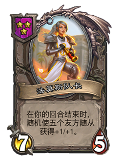 ——旧:在你的回合结束时,随机使三个友方随从获得+1/+1。→ 新:在你的回合结束时,随机使五个友方随从获得+1/+1。
