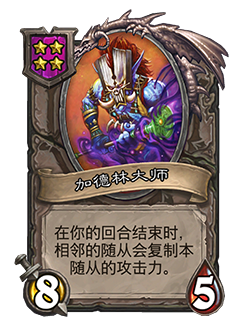 ——旧:在你的回合结束时,使你的等级3的随从获得+1/+1。→ 新:在你的回合结束时,使你的等级3的随从获得+1/+2。