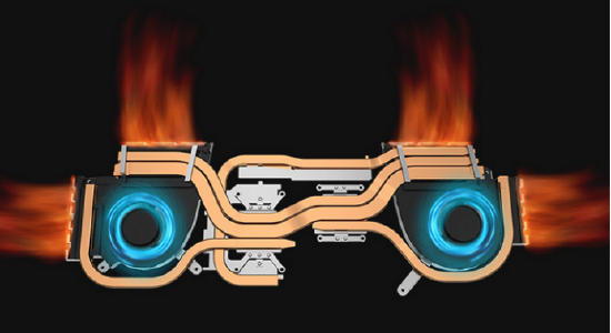 华硕天选3游戏本的性能提升离不开全新升级的冰川散热系统。其内部拥有84叶片双绝尘风扇、五热管、四出风口的散热配置,专属的A面梯形切口可提高空气交换效率,带来约25%的散热效能提升。D面采用多路进风优化风道,C面键盘区域采用CoolingZone键盘进气设计,即能增加内部进气量,同时能降低键盘表面温度,即使高负载也可可让手部不受硬件热量的炙烤。