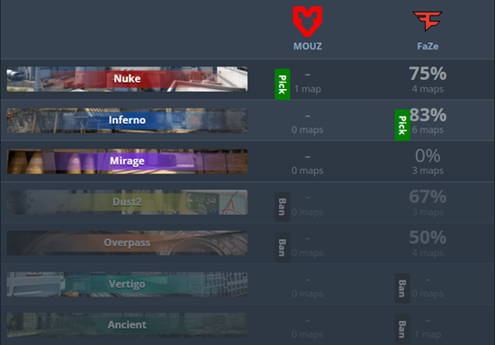 MOUZ 1-2 FaZe(Nuke 16-7;Inferno 10-16;Mirage 14-16)