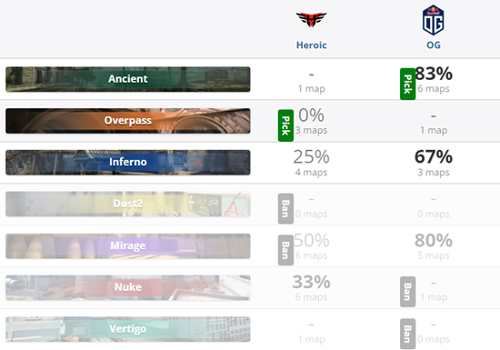 OG 1-2 Heroic ( Ancient 16-14 ;Overpass 12-16; Inferno 13-16)