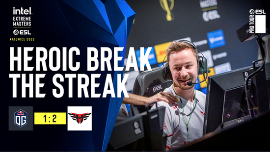 IEM卡托维兹:OG对阵Heroic,图一Ancient,慢热的OG虽然上半场1-7开局,nexa灵性指挥配合flameZ和niko双叉戟鏖战三十回合险胜。而OG的Overpass熟练度不如Ancient,CT未交出满意的答案导致下半场T进攻艰难,Heroic扳回一城。决胜图Inferno,mantuu终于醒来多次大狙前压拿首杀帮助OG得分,但Heroic极强的纪律性给予OG极大防守压力,易边后Heroic稳扎稳打最终取得比赛胜利。