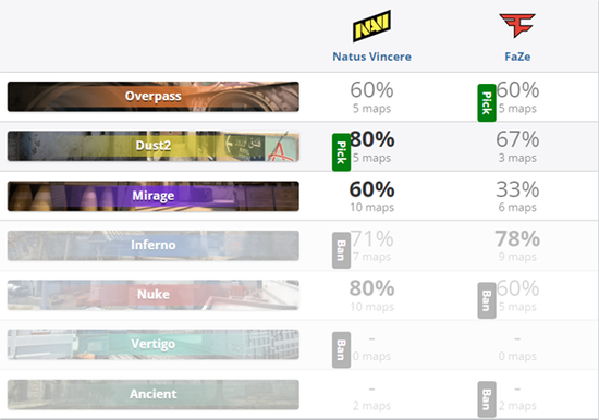 NaVi 2-1 FaZe (Overpass 13-16; Dust2 16-12; Mirage 22-19)