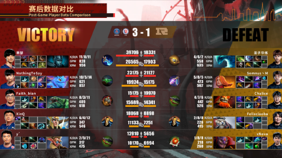 北京时间2月20日,DPC中国联赛季后赛进入了决赛日的争夺,RNG在败者组决赛中2-0击败Aster战队进入了决赛,而在决赛BO5中,PSG.LGD在先失一局的情况下连扳三局,以3-1拿下本次DPC中国联赛季后赛冠军,收获5万美金奖金及250点DPC积分。