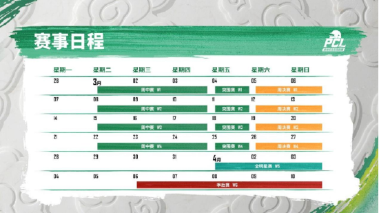 2022PCL春季赛将于3月1日正式开赛,直至 4月10日决出最终冠军。赛事分为常规赛、全明星赛和季后赛三个阶段。与往届比赛相比,本次春季赛的赛程有两处主要变化。第一是在常规赛中新增加了突围赛,各队将在突围赛中可以争夺周决赛最后8张入场券,这也将极大地提升比赛的刺激程度和观赏性。第二是为了回馈粉丝和选手,在为期4周的常规赛结束后,增设了娱乐性质的全明星赛,不仅为观众增添了一份乐趣,也能让选手为季后赛做好充分的准备。