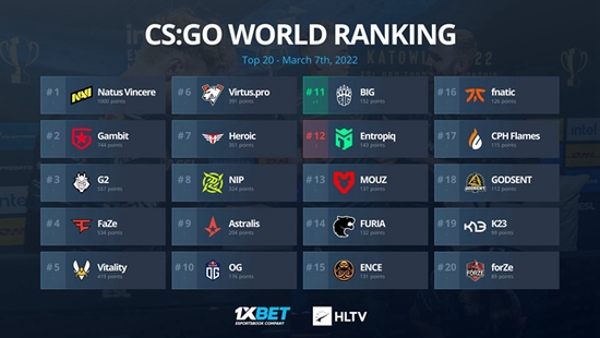 HLTV更新了本周的世界排名,Top20风平浪静。