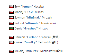 目前波兰战队提交的EPL参赛阵容为(尚未确认最终阵容):