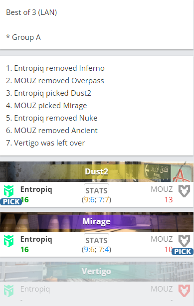 Entropiq 2-0 MOUZ (Dust2 16-13;Mirage 16-10)