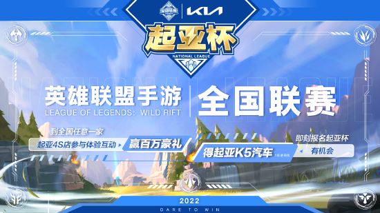 相信每一位喜爱英雄联盟赛事的召唤师们,都还有一颗敢玩敢秀的心,能够CARRY绝不躺赢。各位召唤师,举起你们的手机,携手你一起上分的战友,共同踏上属于英雄的新征程,敢玩敢秀,赛出风采,加入这场精彩刺激的赛事对决!每位参赛的召唤师均有机会获得丰厚的游戏道具以及现金奖励,除此之外,全国冠军队伍将会获得1辆起亚K5汽车三年使用权!全国总决赛前四名的战队更有机会向英雄联盟手游职业赛道发起挑战!