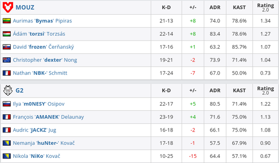 MOUZ 2-0 G2(Nuke 16-12;Mirage 19-17)