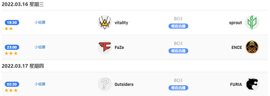 EPL S15 B组的比赛将于3月16日开启,首轮对阵如下: