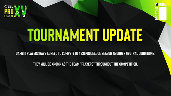 ESL在官方社交媒体上已确认Gambit的选手将参加EPL S15,他们将以Players的队名标签参赛。