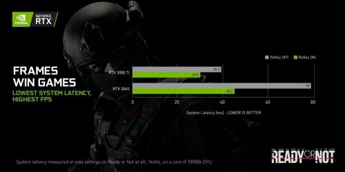 2022年3月15日,NVIDIA宣布为《影子武士3》(Shadow Warrior 3)和《严阵以待》(Ready or Not)引入NVIDIA Reflex支持,为GeForce玩家降低系统延迟。在《影子武士3》(Shadow Warrior 3)中启动Reflex可将系统延迟降低56%,在《严阵以待》(Ready or Not)中启动Reflex可将系统延迟降低42%。降低系统延迟将帮助玩家提高游戏中的竞技表现。