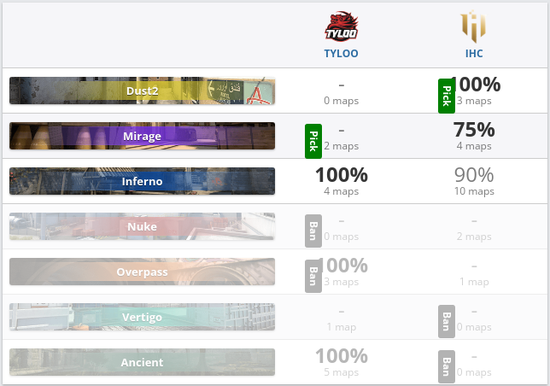 TYLOO 2-1 IHC(Dust2 16-8;Mirage 9-16;Inferno 16-8)