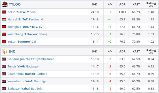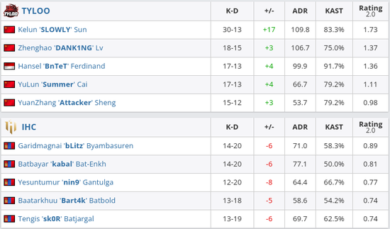 ESL挑战者联赛S40亚太区胜者组,TYLOO对阵蒙古劲旅IHC,经历“老三张”的一番鏖战之后,TYLOO终以2-1的比分拿下本场比赛。在小分互赢选图的情况下,决胜图来到Inferno,在这张地图上曾经爆锤RA的IHC今日面对TYLOO却略显颓态,好厚米DANK1NG及SLOWLY在图三的关键发挥,为天禄最终的胜利做足了贡献。横向较之,IHC整体的打法并无明显问题,枪法层面更是可圈可点,但在图三先后被DANK1NG、SLOWLY刷屏干懵之后,一蹶不振,TYLOO取得了最终的胜利。