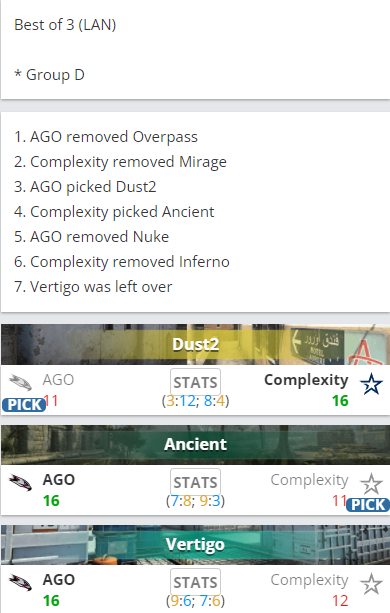 Complexity 1-2 AGO (Dust2 16-11;Ancient 11-16;Vertigo 12-16)