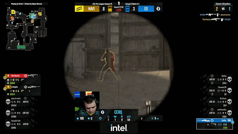 手枪局EG中路下水道转B,水下Perfecto双杀拖时间,NaVi赢下手枪局。长枪局NaVi双人反清长管拿到信息,无奈人数劣势被EG拿到第一分。EG默认被b1t枪法瓦解,队友及时补防,NaVi扩大比分差距。