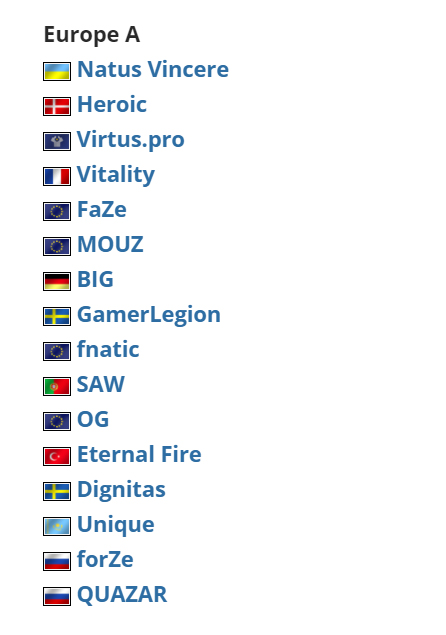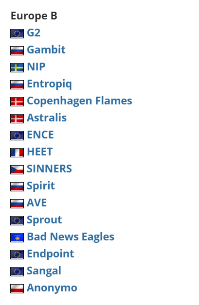 注:RMR三大赛区战队阵容截图来源自HLTV