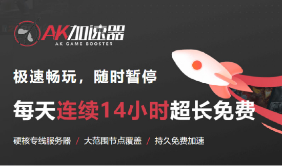 AK加速器、每天连续14小时超长免费、极速畅玩随时暂停、邀请好友可无限白嫖加速时长、金融级传输专线电竞级标准,游戏稳定有保障,全球节点覆盖全球覆盖,AI智能选择节点更轻松。