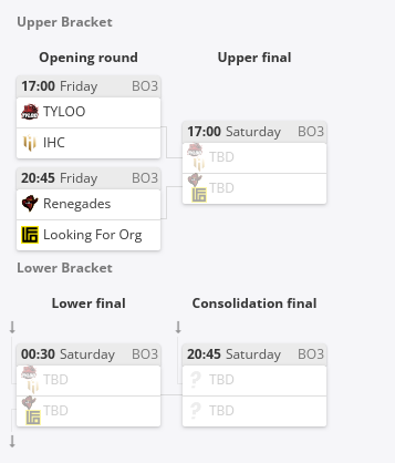 EPL上LFO虽然0-5出局,但是他们还是在对阵fnatic和NIP的时候拿下了一些地图,拥有老爸站在身后的气势加成他们势必会勇往直前。因为身在欧洲,他们和LVG一样选择参加中东地区的亚洲RMR公开预选,比赛中他们不敌LVG和NASR之后第四出局。然而柳暗花明又一村,LVG因为签证问题不得不放弃本届RMR赛事,获得第二次机会的LFO一定会倍加珍惜。